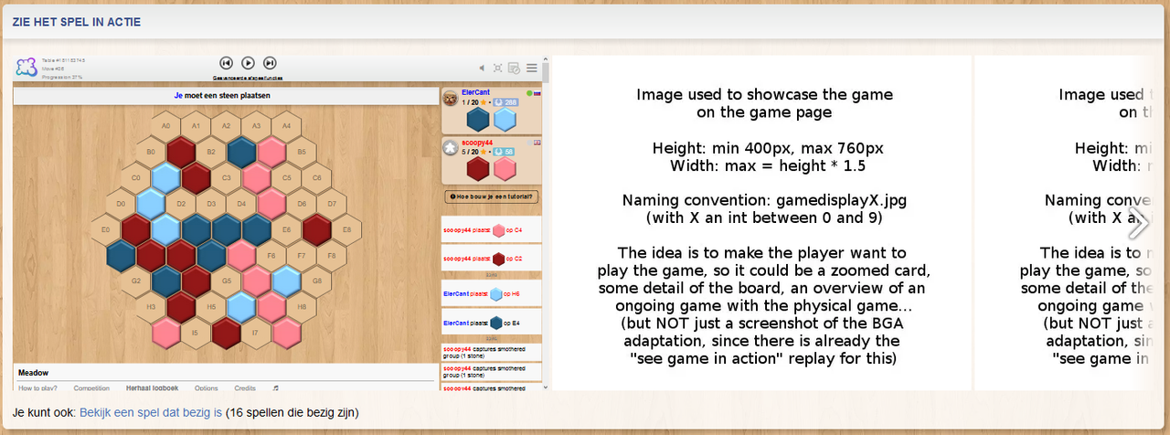 There are no screenshots on the game page, just placeholders: boardgamearena.com/gamepanel?game=meadow