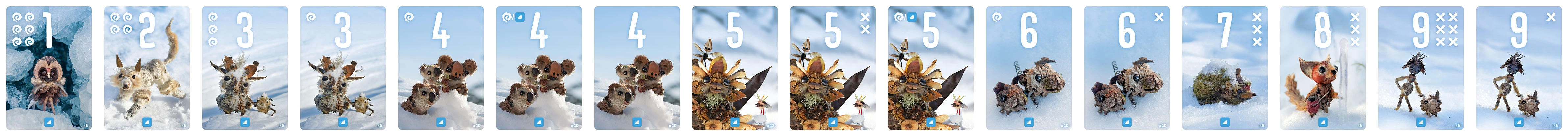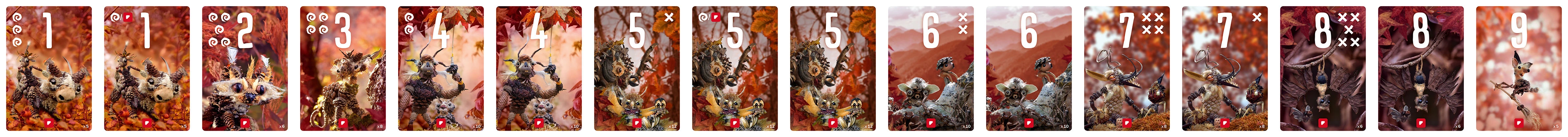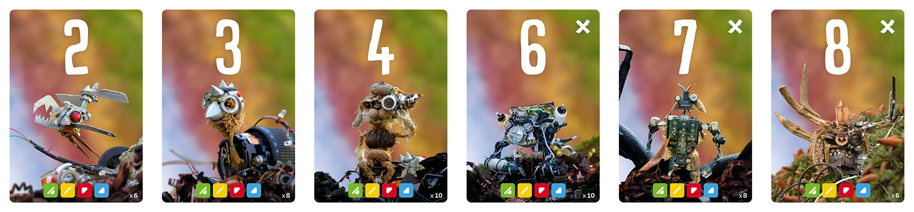PillarAngel當所有玩家都選擇了牌後,有人*用卡片完全覆蓋了他的九宮格*,該回合結束。 在兩人遊戲中,結束該回合的觸發條件將在*選完第二張卡後*。 玩家將計算他們的分數: -生效的牌 -最大的顏色群 -螺旋 -X(每個[red] -1 [/red]分) !!! 除了他們上方已生效的牌,面朝下的卡牌*不*計算任何分數。 然後所有的牌都被收回牌堆,並開始新一回合的遊戲。 [green]第三回合結束時,誰分數高,誰就獲勝! 平手的玩家共享勝利! [/green]4round-counter-wrapper65c65c2259d4900round-counter-wrapper 8